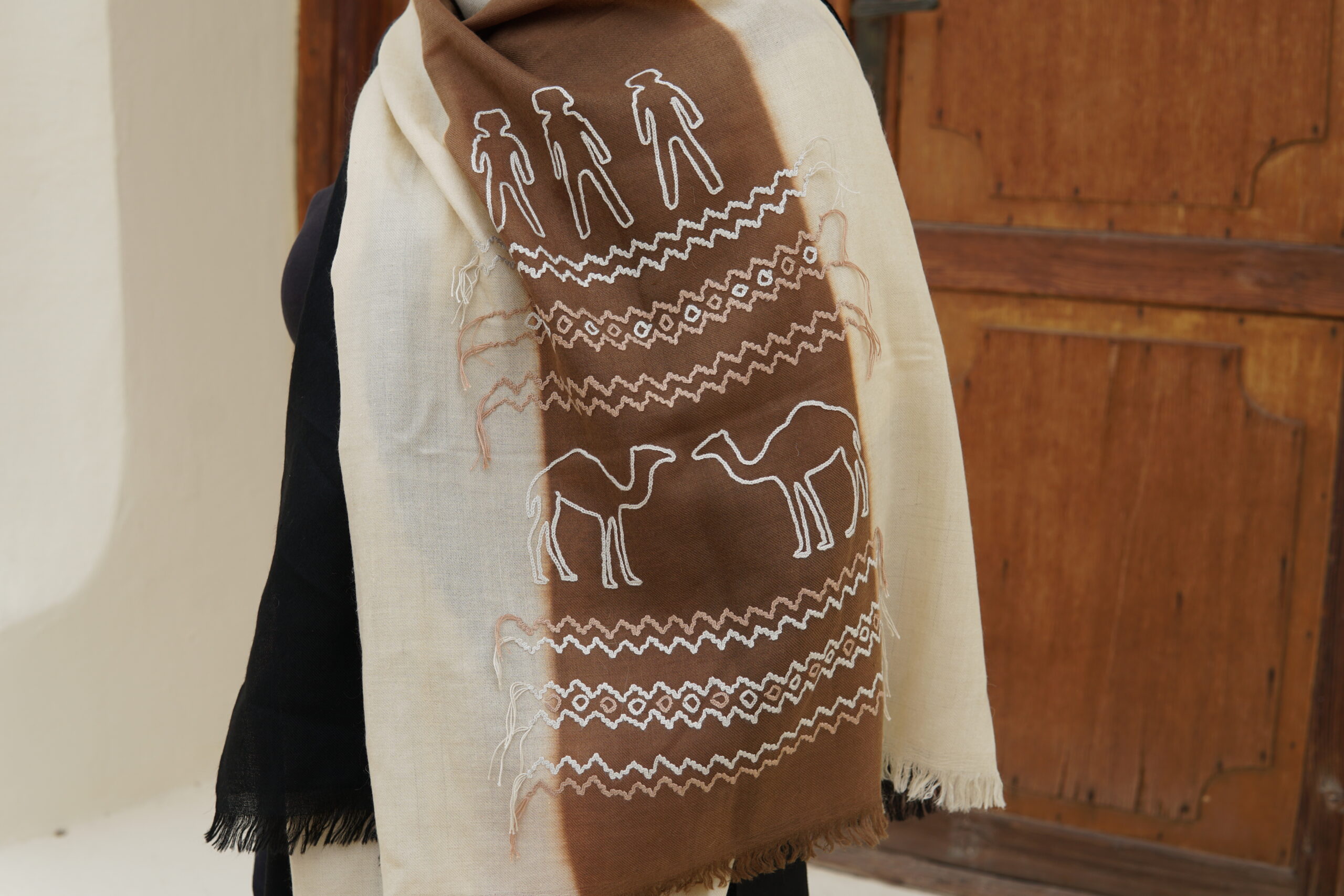 Black/camel/ivory shawl, Camel/orange stole, Ivory/black/brown shawl, Ivory/red shawl, Red Scarf
